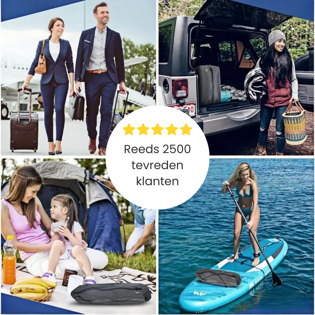 Wil jij ook zorgeloos reizen zonder te moeten proppen of extra bagagekosten te betalen? Ben je het zat dat je koffer altijd te klein is voor al je kleding? De #1 beoordeelde Vacuum Compressiezak 17L biedt dé oplossing! Deze innovatieve vacuümzak comprimeert je kleding in seconden, zodat je meer kunt meenemen zonder extra ruimte in te nemen.